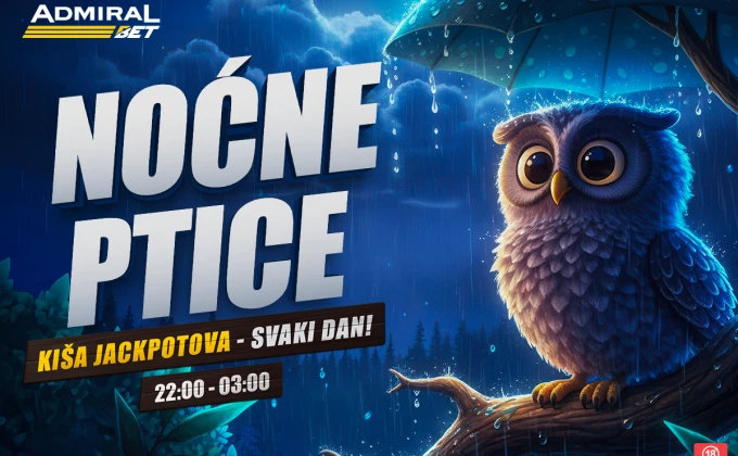 Naime, AdmiralBet ima rešenje za sve noćne ptice, a to je Kiša džekpotova u vreme kada svi drugi spavaju! Svakog dana do kraja januara, od 22 časa do 3 sata ujutru, padaće kiša, ali ne bilo kakva. Reč je o 25 noćnih džekpotova u vrednosti od po 5.000 dinara, ukupno 125.000 dinara svake večeri, i to na svim slot igrama!