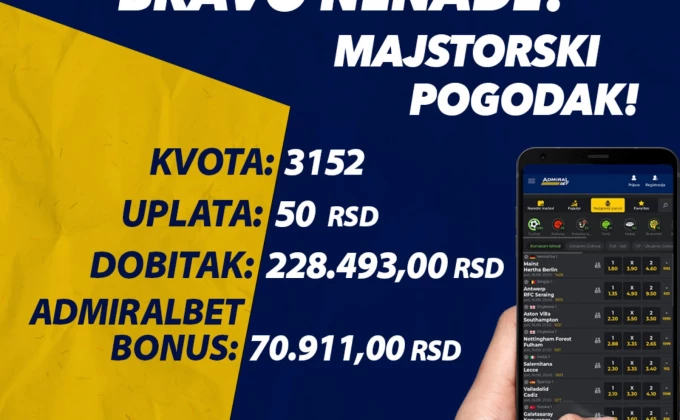 Tiket kao bombona, šta drugo da kažemo. Nenad je uspeo gotovo nemoguće, poređao je u četvrtak 16 parova LE i LK i na 50 dinara kvota je bila 3752, dobitak oko 220 000, bonus oko 70 000, sve prelepo spakovano.