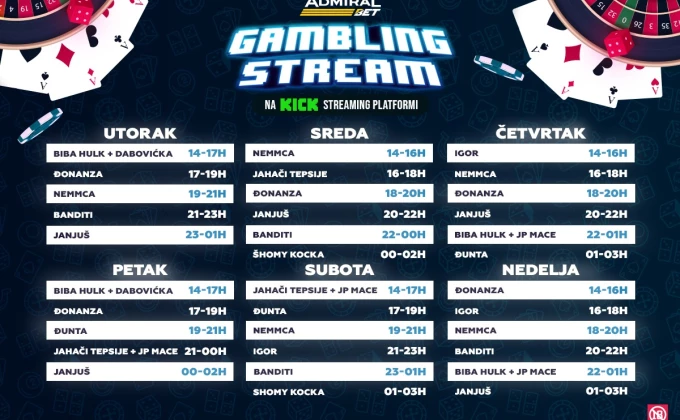 Bilo da ste fan slot igara, volite da slušate zabavne komentare uz rulet, ili samo želite da se opustite uz dobar šou – AdmiralBet Kick kanal je mesto za vas.