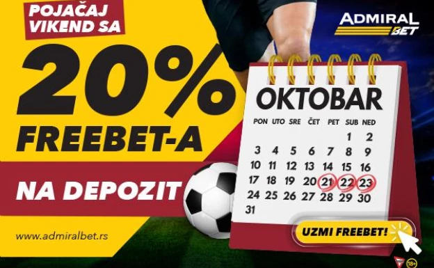 Tokom naredna tri dana, od petka do nedelje, na svaki vaš prvi depozit u danu u iznosu od 1000 dinara ili više, dobijate 20% Freebeta koji možete da iskoristite za sportsko klađenje.