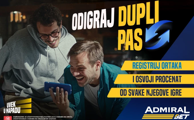 AdmiralBet predstavlja novu funkciju koja zajedničku igru podiže na viši nivo. Dupli pas je refer-a-friend koncept osmišljen tako da nagrađuje svaku preporuku, poverenje i timsku igru. Svaka asistencija donosi priliku za zaradu, jer svaka nova registracija preko preporuke otvara mogućnost za dodatni freebet.