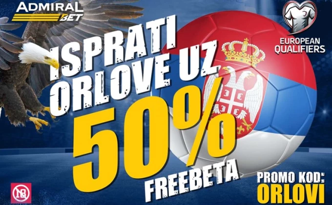 Ono što je važno naglasiti je da je u tom periodu, od petka 13. do utorka 17. oktobra do ponoći, aktivan promo kod ORLOVI koji svim igračima sa otvorenim korisničkim AdmiralBet nalogom svakog dana u toku trajanja promocije donosi sjajnih 50% freebet bonusa na prvu dnevnu uplatu depozita. Kao što je rečeno, ovaj freebet bonus se dodeljuje nakon svake dopune naloga, u visini do 20.000 dinara.