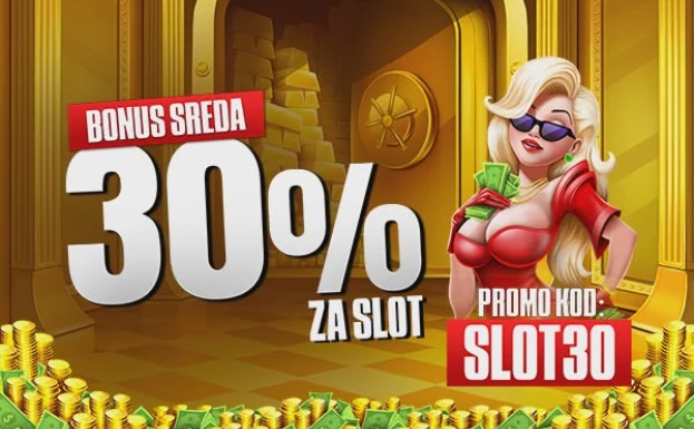 Za sve koji su raspoloženi za igru, stiže idealna ponuda: promo kod SLOT30 vam svake srede donosi 30% bonusa za slot na prvi dnevni depozit. Maksimalna vrednost bonusa iznosi 20.000 dinara i može se iskoristiti na svim slot igrama na sajtu PinnBet.rs večeras do ponoći.