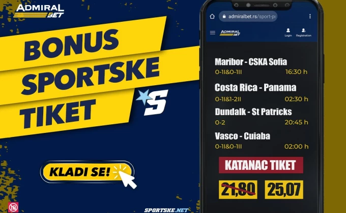 AdmiralBet i Sportske su i danas za vas pripremili bonus tiket.