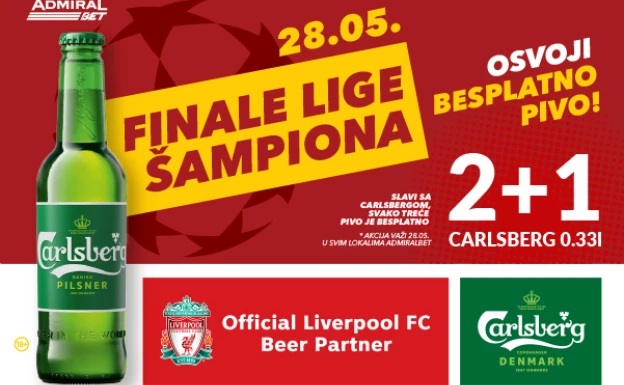 U subotu na dan finala u svim AdmiralBet objektima važi popularna akcija 2+1, odnosno svako treće Carlsberg pivo je besplatno.