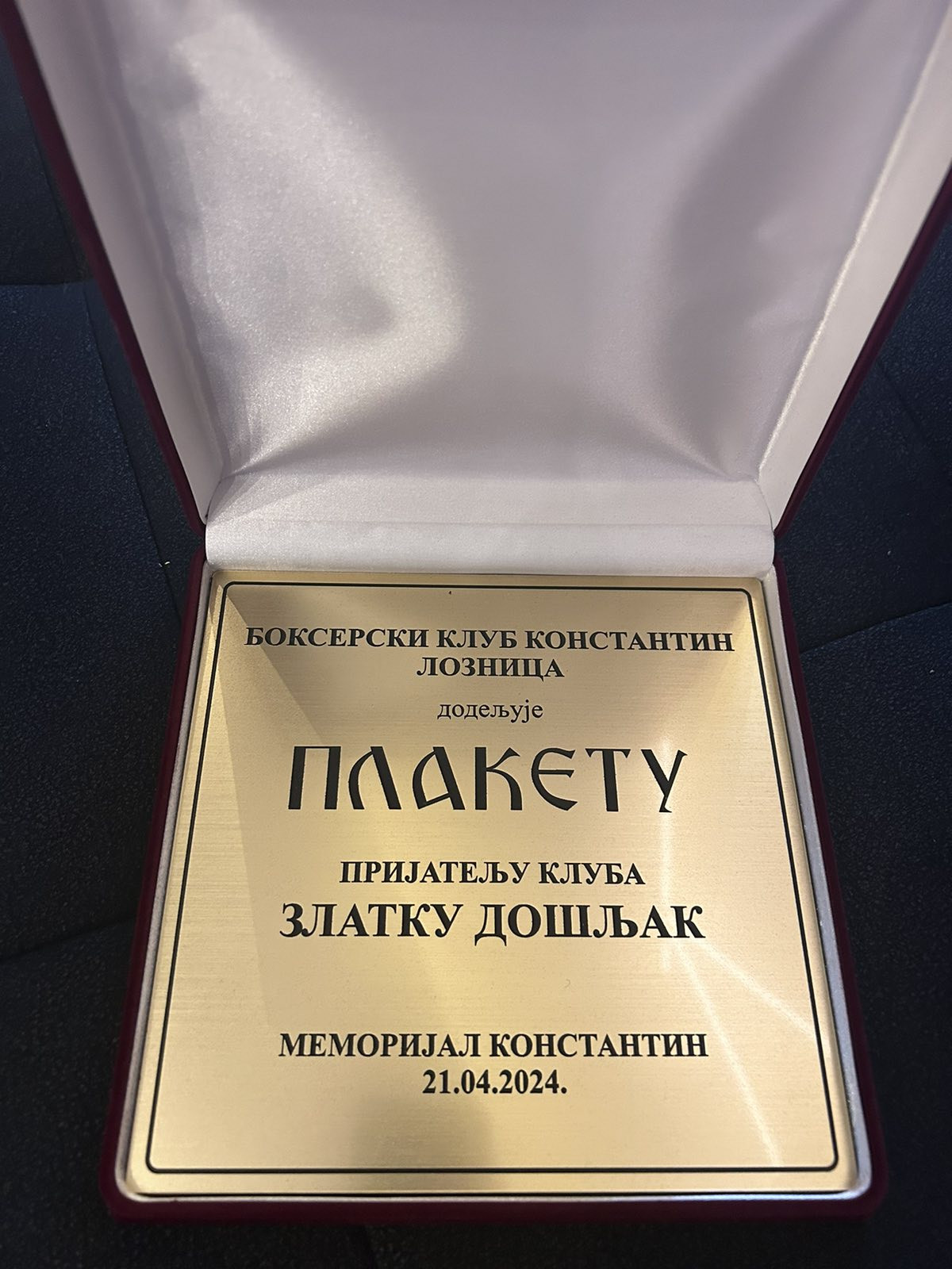 Zlatko Došljak se zahvalio Bokserskom klubu Konstantin na plaketi i poželeo im puno uspeha, te da BK Konstantin iznedri puno šampiona. Loznica je grad boksa. Još nešto što veže našeg osnivača Zlatka za Loznicu jeste da je 2006-te postao prvak Srbije u gradu boksa i proglašen je najboljim bokserom Srbije.