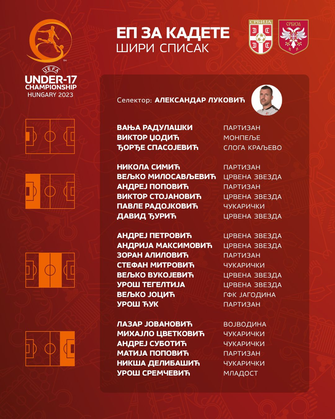 Selektor Aleksandar Luković saopštio je širi spisak igrača za mečeve u Mađarskoj.