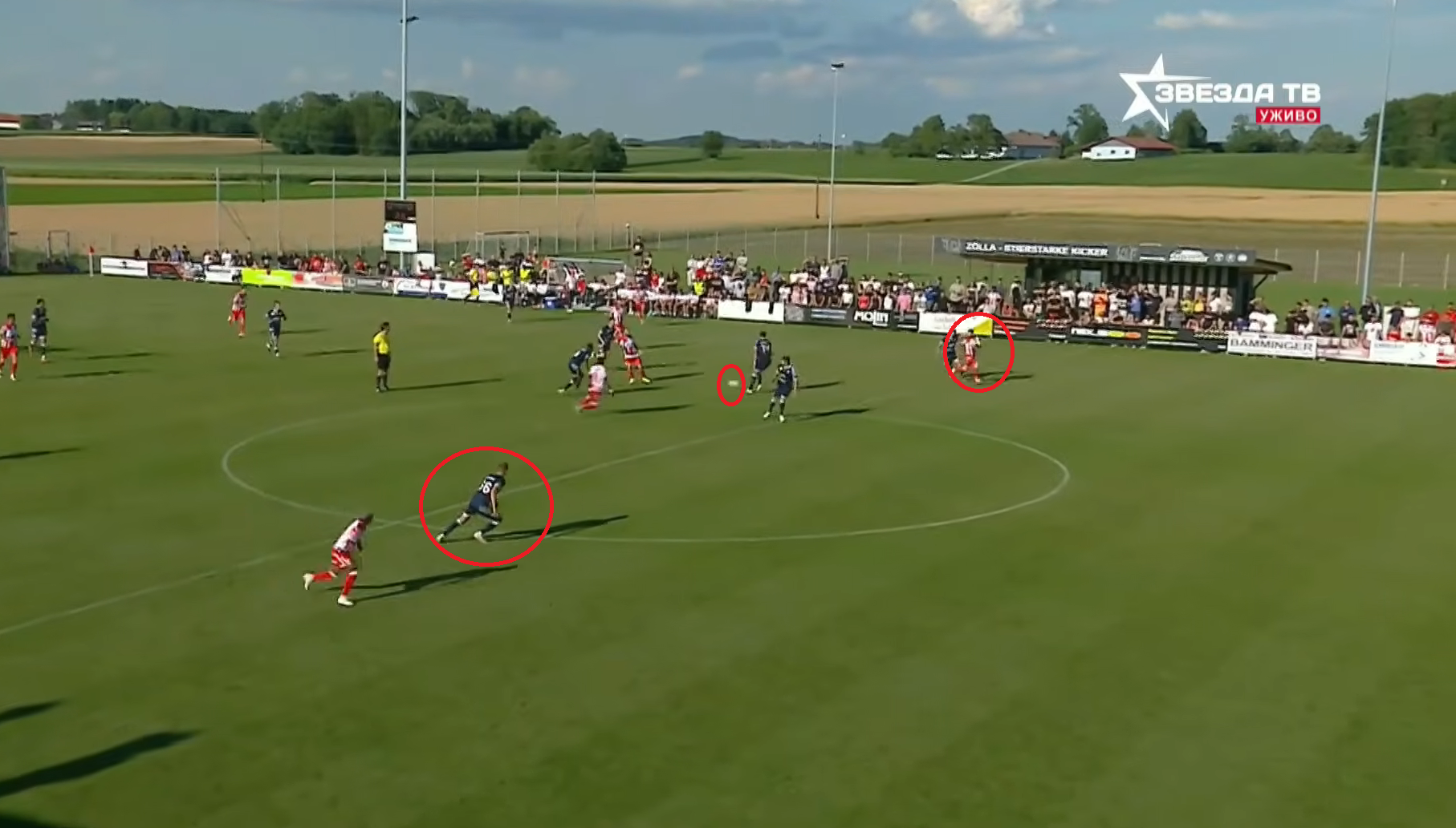 Printscreen/Zvezda TVPotom je usledilo još nekoliko odličnih prilika za crveno-bele. Razredila se odbrana Akademije Puškaš, Aleks Katai i Mirko Ivanić su imali odlične prilike, ali Marek Tamaš nije dopuštao da lopta završi iza njegovih leđa.