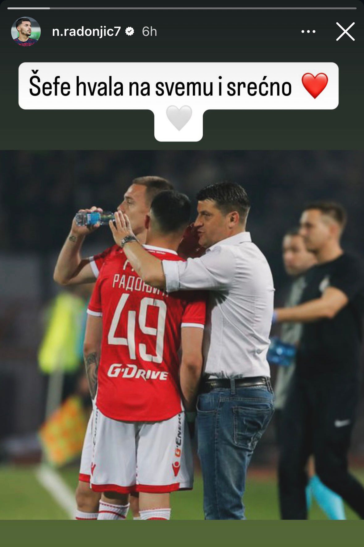 "Šefe, hvala na svemu i srećno", napisao je Radonjić na svom Instagramu.