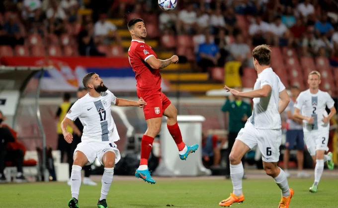 Fudbaleri reprezentacije Srbije poveli su u 23. minutu protiv Slovenije sa 1:0 golom Aleksandra Mitrovića.