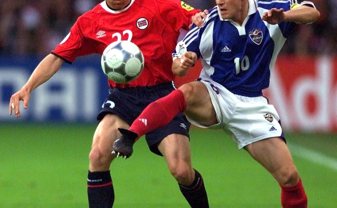 Kao Jugoslavija (ona krnja, sa Crnogorcima) dobili smo ih na EP 2000. poslednje prvenstvo Evrope na kojem smo učestvovali i mi, i oni, odlučio je Savo Milošević već na startu, igralo se u Liježu, a Dragan Stojković je odigrao sjajan meč. Zanimljivo i norveški selektor Solbaken je bio deo reprezentacije Skandinavaca, ali nije ušao u igru tog dana u Valoniji jer je bio povređen, u stvari on se pojavio samo protiv Slovenaca na tom takmičenju.
