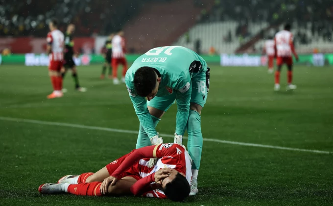 Kazna za taj promašaj usledila je četiri minuta kasnije. Gosti su iznudili korner sa desne strane, odlično ga je izveo Ferman, iako zasut grudvama sa tribina, a Zvezdini fudbaleri ostavili su potpuno samog Luka de Jonga na nekih desetak metara od gola! Odlični strelac je takav poklon oberučke prihvatio i udarcem glavom poslao loptu u levu stranu Glazerovog gola - 0:1.