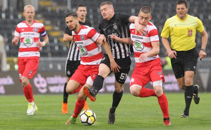 Crno-beli su na poluvremenu imali dva gola prednosti, a moglo je da bude i mnogo ubedljivije da su udarci Armina Đerleka, Leandrea Tavambe i Saše Zdjelara bili nešto precizniji.