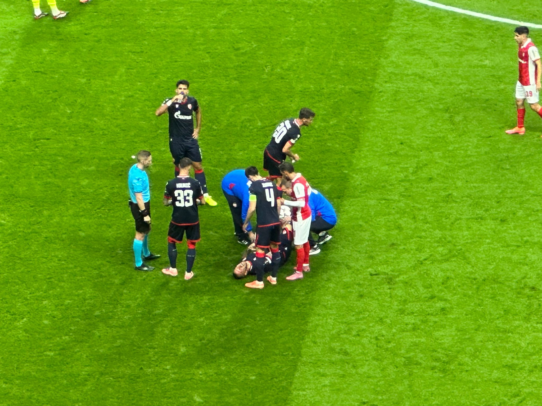 Da stvar bude još gora u 37. minutu van terena je morao Marko Arnautović zbog povrede zgloba. Jauci i previjanje na terenu špica Crvene zvezde nisu bili ohrabrujući kao ni činjenica da samostalno nije uspeo da izađe s terena.