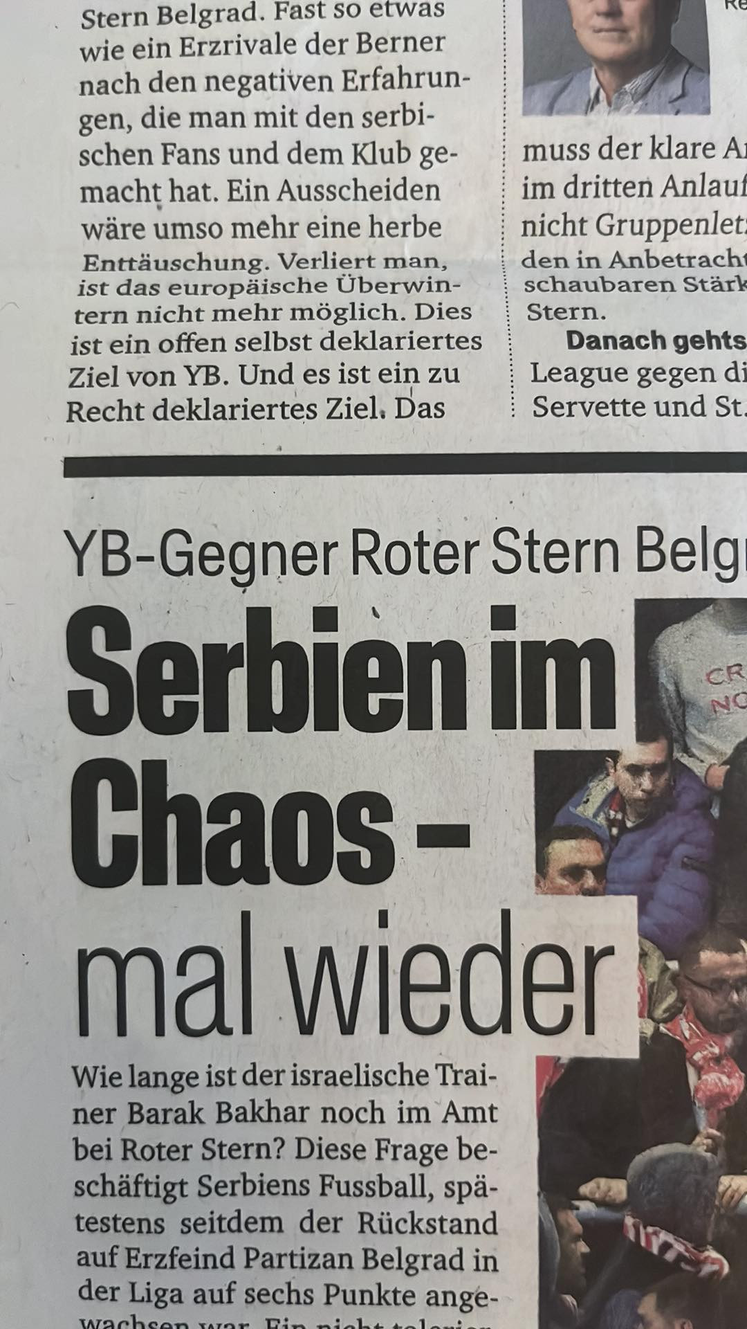 "Berner Zeitung" u prvi plan stavlja Rafaela Vikija, trener Jang Bojsa je pod pritiskom, iako je on na konferenciji za medije naveo drugačije, smatraju u ovom listu da bi ova utakmica mogla da mu odredi i sudbinu na klupi trenutno najboljeg švajcarskog tima.
