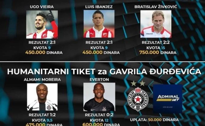 Ništa zato, kako rekosmo, kada ima volje, ima i načina. Kladionica AdmiralBet je odlučila da nagradi one koji su bili najbliži. Tako su tiketi Le Taleka i Mičela Donalda od 2:0 za Crvenu zvezdu bili priznati kao "dobitni", pa je suma od milion i sto hiljada dinara otišla na račun malog Gavrila.