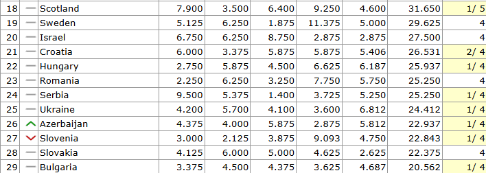 Imao je i Partizan svoj doprinos, ali definitivno da je Crvena zvezda ta koja je donela najviše bodova Srbiji i ovoga puta. No, ni to nas nije ostavilo na 22. mestu, naprotiv, pali smo zbog dobrih rezultata drugih zemalja, pa smo sada na trenutnoj listi na 24. mestu.