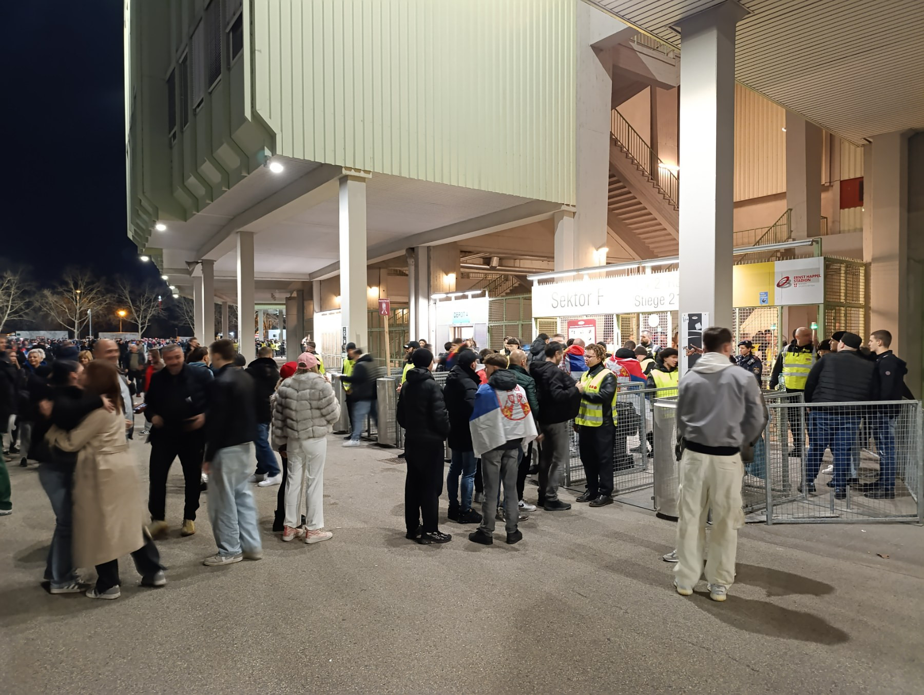 Ovaj je sektor posebno ograđen i tom prostoru prisutno je vidljivo veći broj policije i redara, sve u nadi da će se susret u Beču odviti bez incidenata na tribinama.