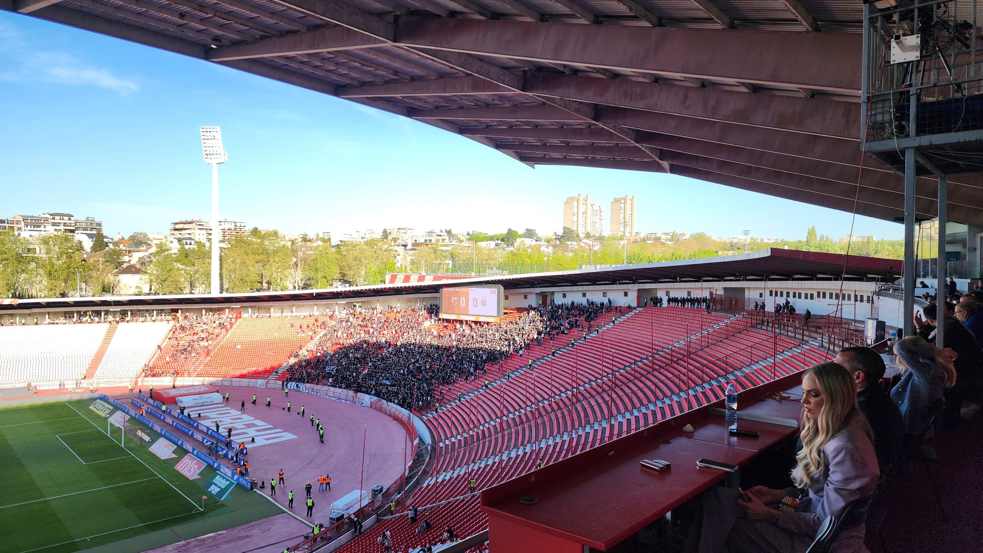 Pozicija na tabeli otpisuje bilo kakvu neizvenost iz tog pogleda, za raziliku od minulih derbija ove sezone, ali Crvena zvezda bi ovog popodneva mogla da proslavi devetu uzastopnu titulu, pa otuda čudi što makar domaći navijači nisu u većem broju došli na potencijalno duplo slavlje.