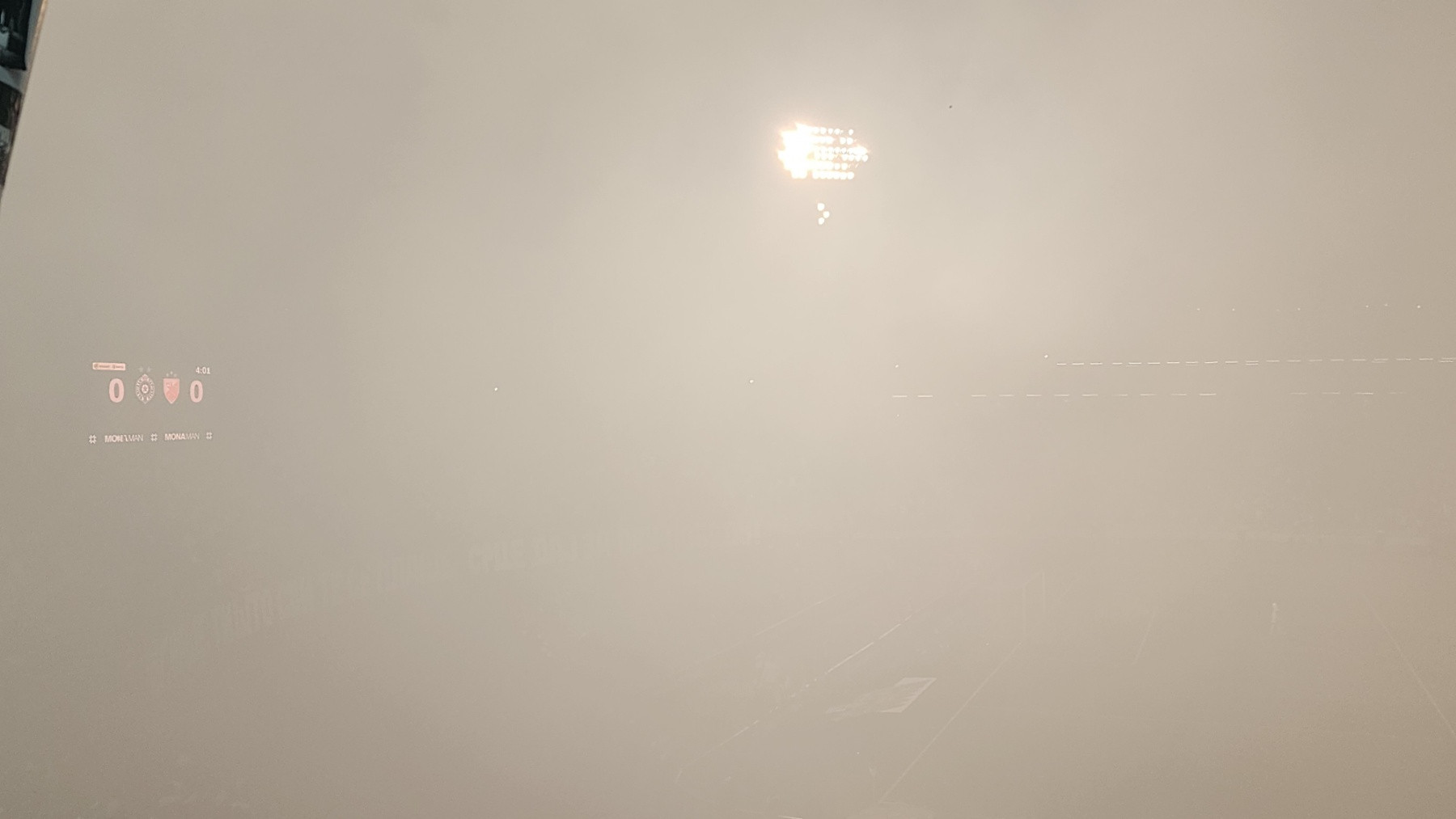 Crno-beli dim je bio toliko gust da se baš ništa nije videlo i sudija je morao da prekine utakmicu.