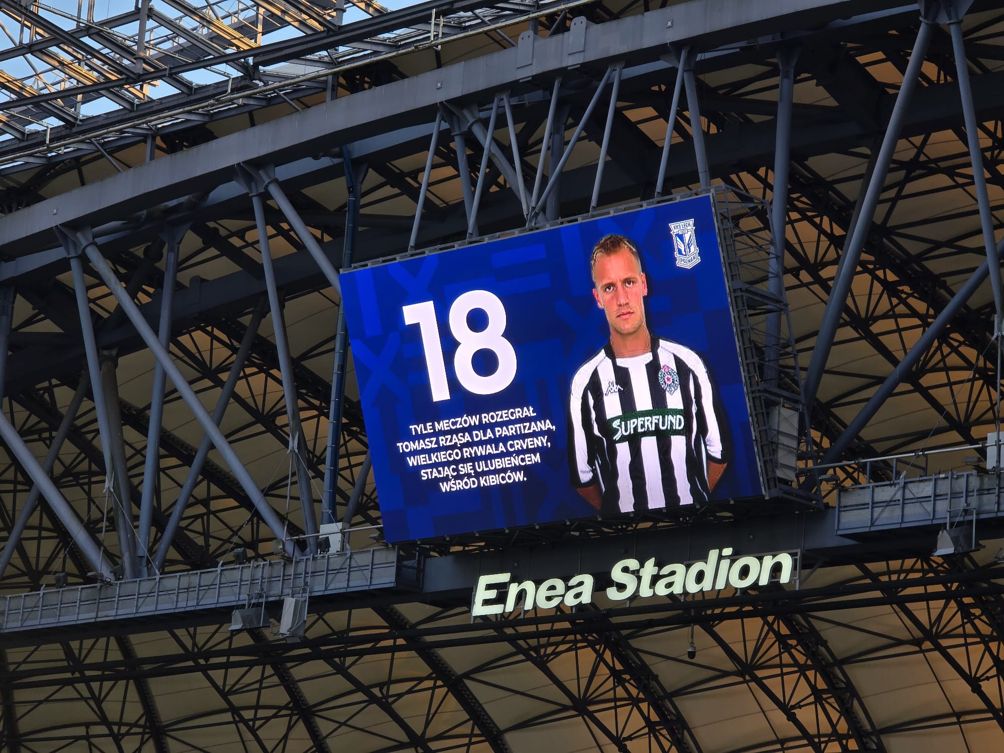 "Tomaš Žonsa je igrao mnogo mečeva za Partizan, Zvedinog najvećeg rivala, postao je miljenik navijača", pisalo je na ekranu na kom je Poljak u dresu Partizana.