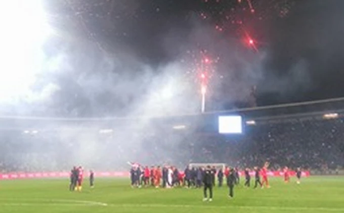 Čim je sudija označio kraj utakmice, na našem najvećem stadionu počeo je veliko slavlje, praćeno vatrometom.
