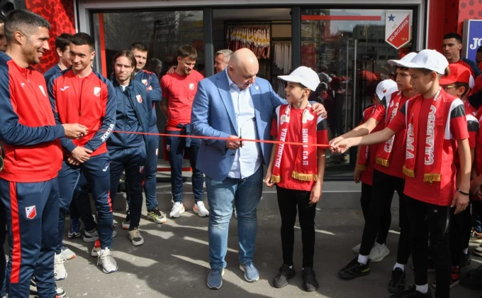 U prisustvu igrača prvog tima, prijatelja i dece kluba, predsednik Dragoljub Zbiljić i svečano je otvorio prvu zvaničnu klupsku prodavnicu.