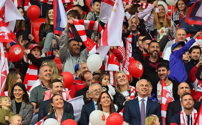 Čelni ljudi uprave crveno-belih nisu bili na svojim uobičajenim mestima u loži, već su bili među onim "običnim" navijačima na zapadnoj tribini.