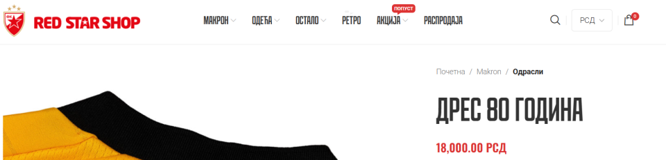 Cena dresa sa brojem "osam" koji je svojevremeno nosila najveća legenda u istoriji kluba Rajko Mitić je 18.000 dinara. Prema podacima iz kraja 2024, to je oko četvrtina prosečne zarade srpskog državljanina za poslednji kvartal godine.