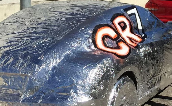 Kvarežmin automobil završio je u nekoj vrsti aluminijumske folije sa prepoznatljivim logom "CR7" a Ronaldo je "raspalio" selfi i postavio sliku na svoj "Tviter".