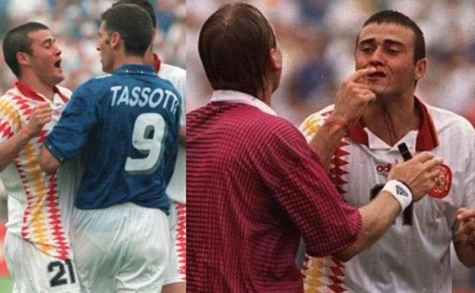 Ipak, ono o ćemu je svet pričao bio je lakat kojim je Mauro Tasoti polomio nos sadašnjem selektoru Španije Luisu Enrikeu, ali dok je "Lućo" izgledao kao iz horora, krvav i dezorjentisan mađarski sudija Šandor Pul je pokazao da se igra nastavi. Posle meča Enrike je tražio zatvor za desnog beka Milana, nije želeo da se pomiri, a Tasoti je dobio osam utakmica neigranja. Izmirili su se tek 15-tak godina kasnije kada je Španac seo na klupu Rome i dao jednu pomirljivu izjavu...
