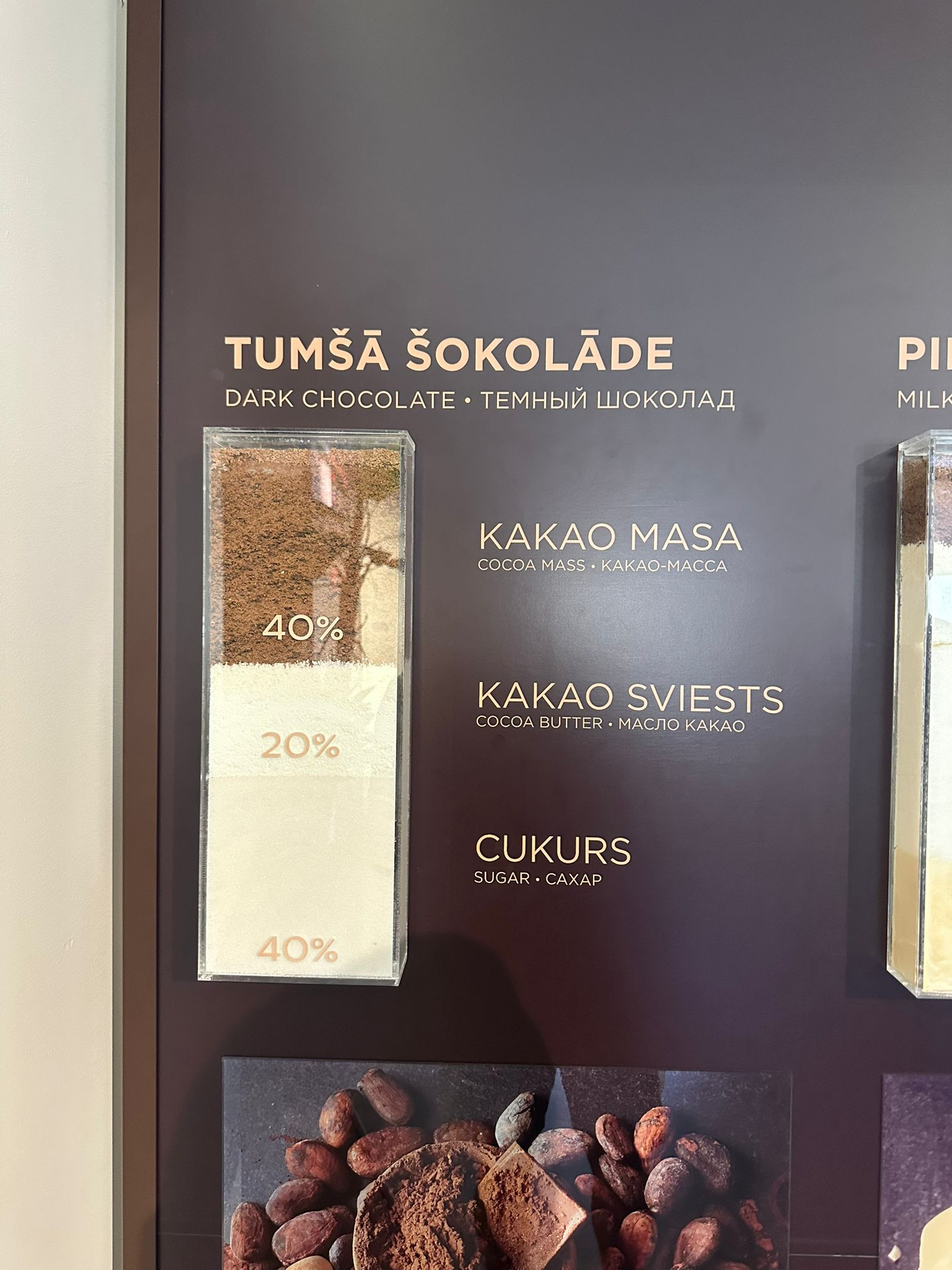 Sami proizvodi sadržali su određene dodatke poput nugata ili biskvita i bili su mnogo ukusni, to im ne mogu zameriti. Nismo imali audio vodiča, jer baš danas, nije bilo moguće iz nekog razloga. Stoga, pri ulasku u kružni muzej, na zidovima se mogu videti krucijalne godine za nastanak čokoladne kulture u Rigi koja je vrlo bogata i datira još od 1870. godine.