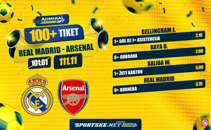 AdmiralBet 100+ tiket - Real i Arsenal daju kvotu sa svim kečevima!