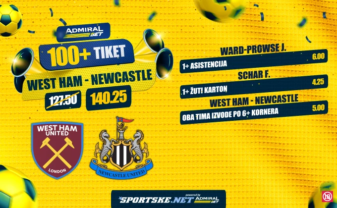 Tačka na 28. kolo Premijer lige biće stavljena večeras duelom u istočnom Londonu između Vest Hema i Njukasla, a AdmiralBet je ovom prilikom pripremio specijalnu ponudu sa neverovatnom kvotom ood 140,25.