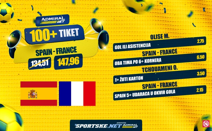AdmiralBet i Sportske 100+ tiket - Spektakl u Štutgartu, Španci i Francuzi za kvotu 147!