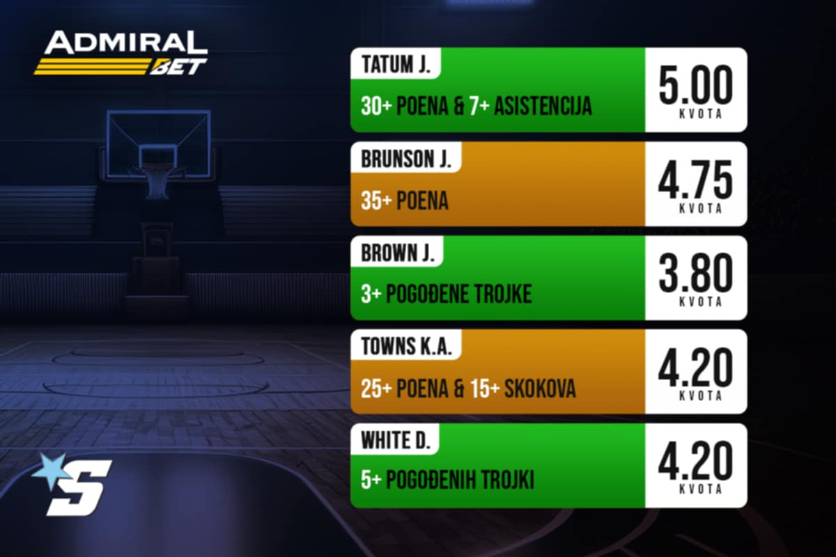 Ovde ćemo izdvojiti nekoliko zanimljivih ponuda sa odličnim kvotama. Na primer, da Džejson Tejtum protiv Niksa ostvari učinak od 30+ poena i 7+ asistencija, za šta je ponuđena kvota 5.00.