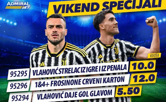 Naravno, i ovoga puta će velike uzdanice trenera Alegrija biti naši reprezentativci Dušan Vlahović i Filip Kostić, a AdmiralBet je spremio svoj atraktivni specijal sa odličnim kvotama, pogotovo kada je u pitanju učlinak naših reprezentativaca.