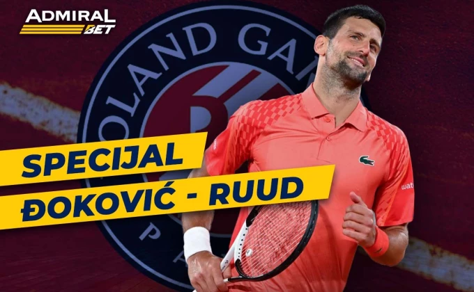 AdmiralBet je za vas pripremio atraktivan specijal za ovaj meč u kojem možete čak 15 veoma zanimljivih opklada za duel Novaka i Ruda.