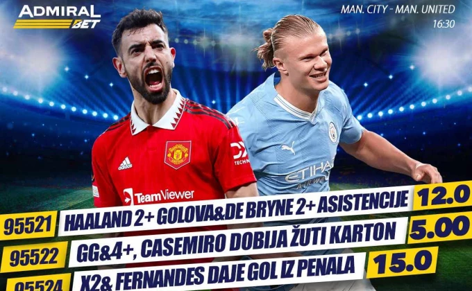 Centralni fudbalski događaj na Ostrvu danas je duel Mančester sitija i Mančester junajteda koji počinje u 16 časova i 30 minuta, a u susret tom duelu AdmiralBet je pripremio i sjajan specijal sa fantastičnim kvotama.