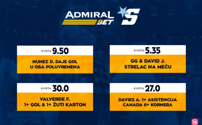 Kompletan AdmiralBet specijal za utakmicu između Kanade i Urugvaja možete da pogledate OVDE ili klikom na ilustraciju u prilogu.
