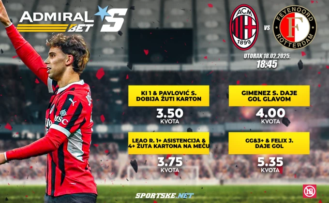 AdmiralBet specijal - Milan kreće iz minusa, borbeni Pavlović ili motivisani Himenez na Fejenord?