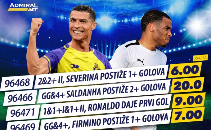 Ako verujete u Ksandera Severinu, njegov gol uz trijumf gostiju i najmanje dva pogotka u drugom poluvremenu AdmiralBet vam isplaćuje kvotu 6, a uz sličan ishod uz dva gola Mateusa Saldanje čak 20.