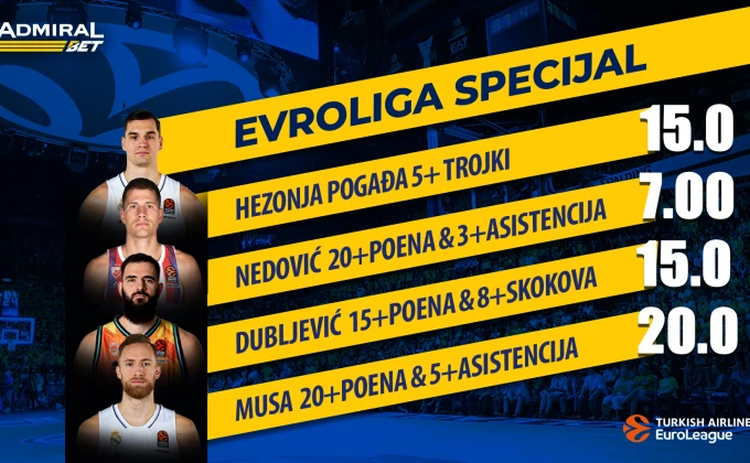 Kao i obično, očekuje vas bogata ponuda na sajtu AdmiralBet kada je Evroliga u pitanju.