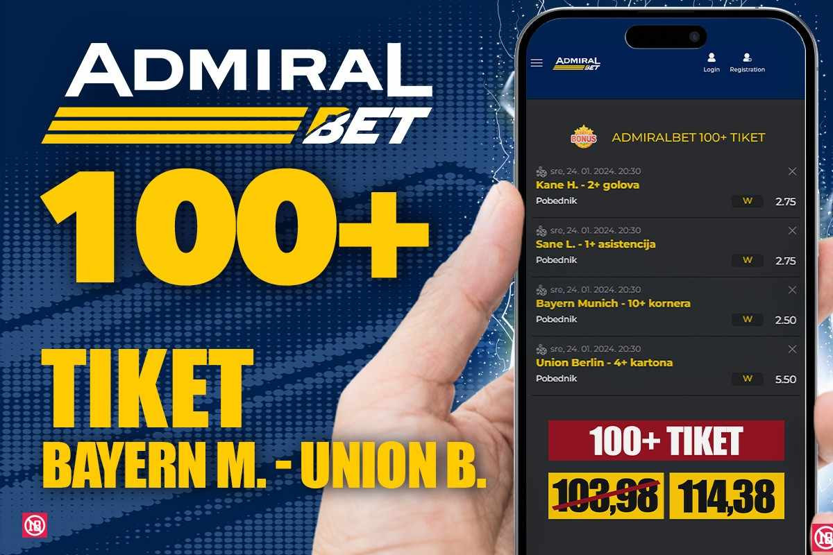 AdmiralBet je za ovaj duel spremio bonus tiket, pod nazivom ''100+ tiket'', a pogađate i razlog za ovakav naziv - ukupna kvota ovog tiketa je veća od 100, konkretno 114.38!