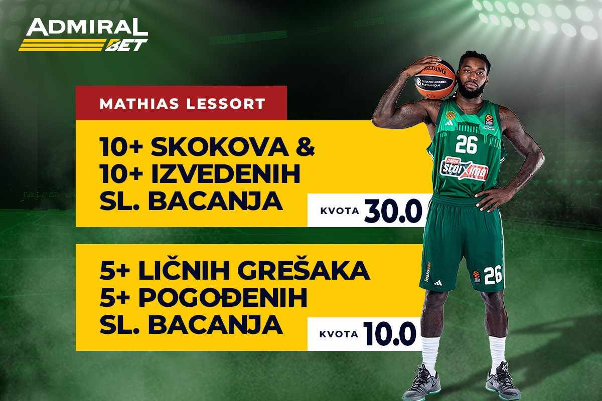 Pogotovo se izdvaja kvota 30.0 da Lesor večeras upiše 10+ skokova i 10+ izvedenih slobodnih bacanja. Takođe, odlična je i kvota 10.0 za Lesorovih 5+ ličnih grešaka i 5+ pogođenih slobodnih bacanja.