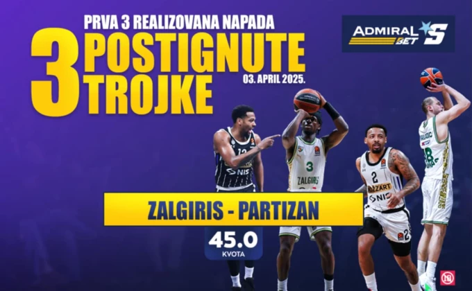 AdmiralBet je spremio sjajnu ponduu vezanu za meč u "Žalgirio areni", a mi izdvajamo specijal u kojem će prva tri realizovana napada biti trojke, kvota je neverovatnih 45.