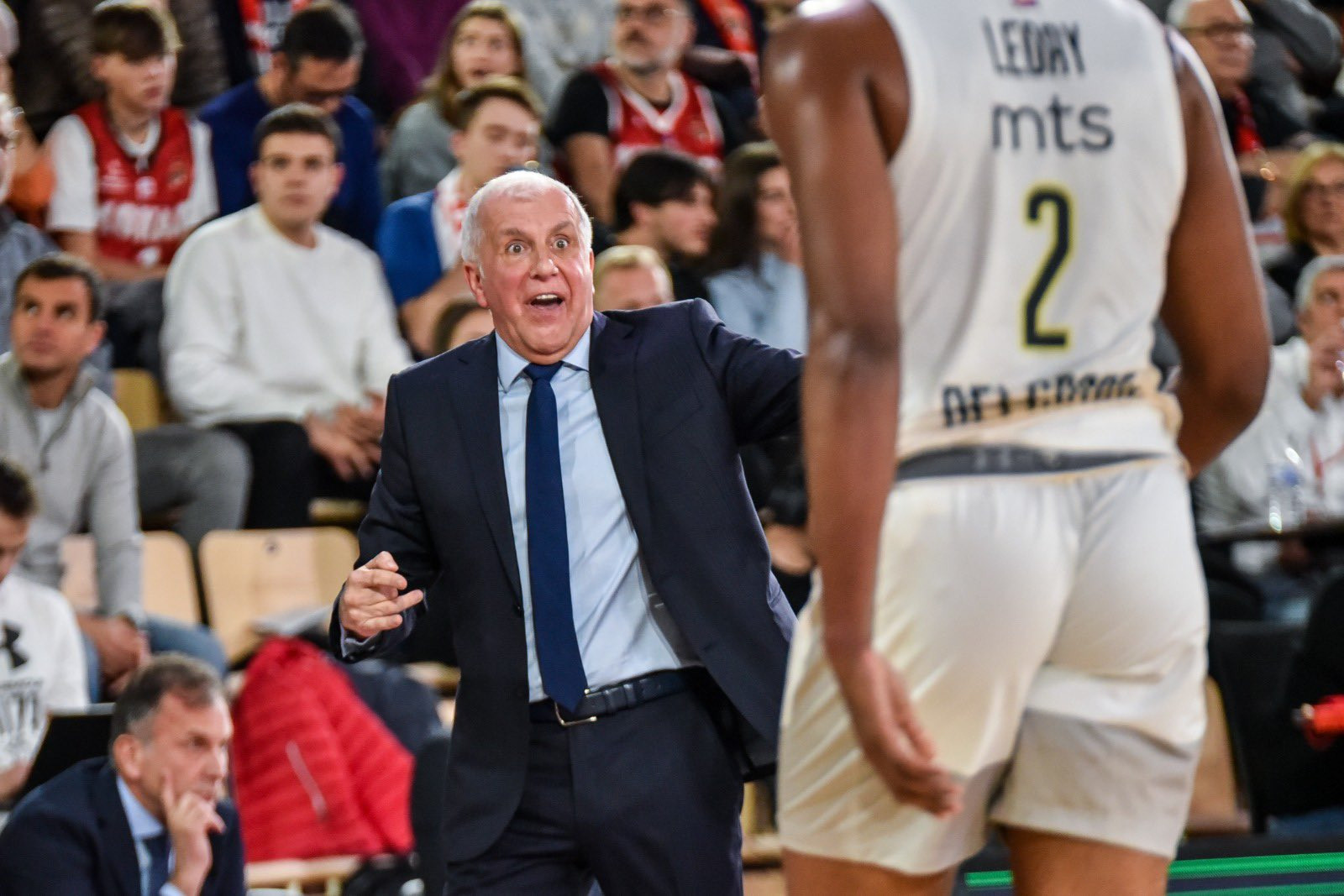 Dok je na terenu sve išlo u prilog Partizanu na klupi Monaka "teške" reči razmenili su nervozni Džejms i trener Saša Obradović, ali je na parketu situacija za "kneževe" bila nešto povoljnija posle tri trojke domaćih koji su tako napravili seriju 11:0 trojkamama Uatare i Lojda uz koš i faul Okoboa.