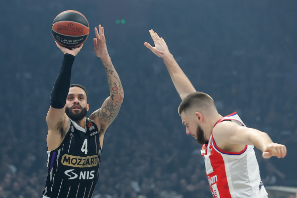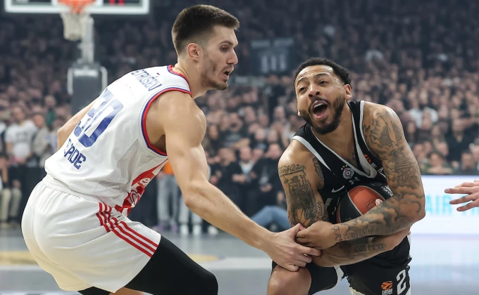 Košarkaši Crvene zvezde pobedili su Partizan kao gosti u "Beogradskoj areni" rezultatom 71:73 u 24. kolu Evrolige.
