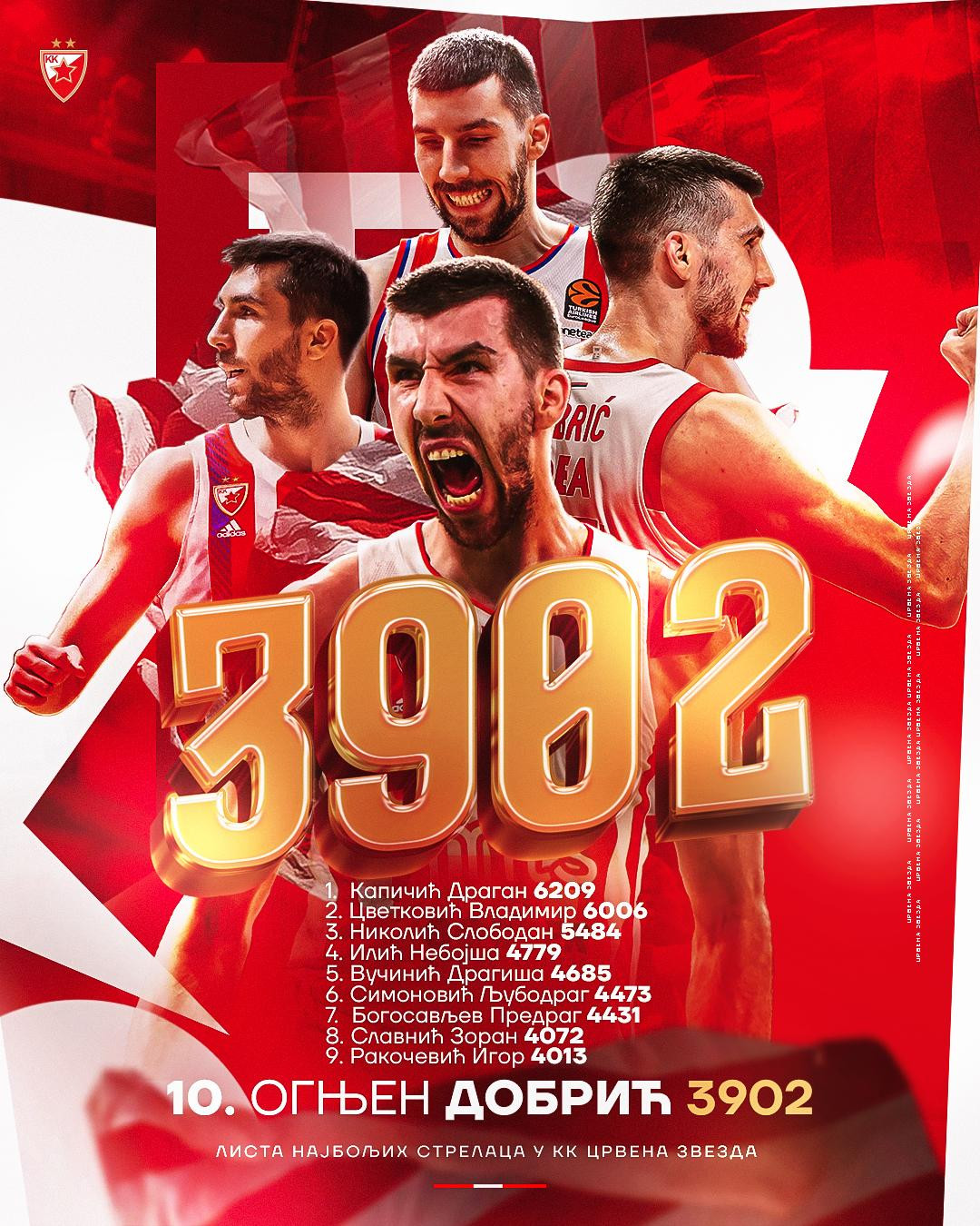 Sa ovih devet Ognjen Dobrić je stigao do 3982 poena i tako ušao među TOP 10 najboljih strelaca u Zvezdinoj istoriji.