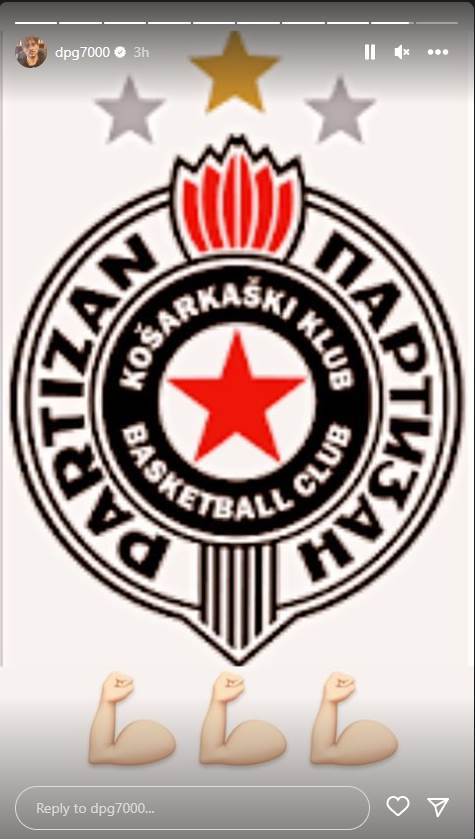 On je podelio na svom Instagram storiju grb Košarkaškog kluba Partizan uz emotikone koji pokazuju snagu, jasno je za koga će navijati večeras.